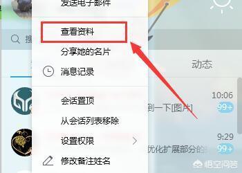 2、右键点击你要设置“特别关心”的好友,选择并打开“查看资料”。