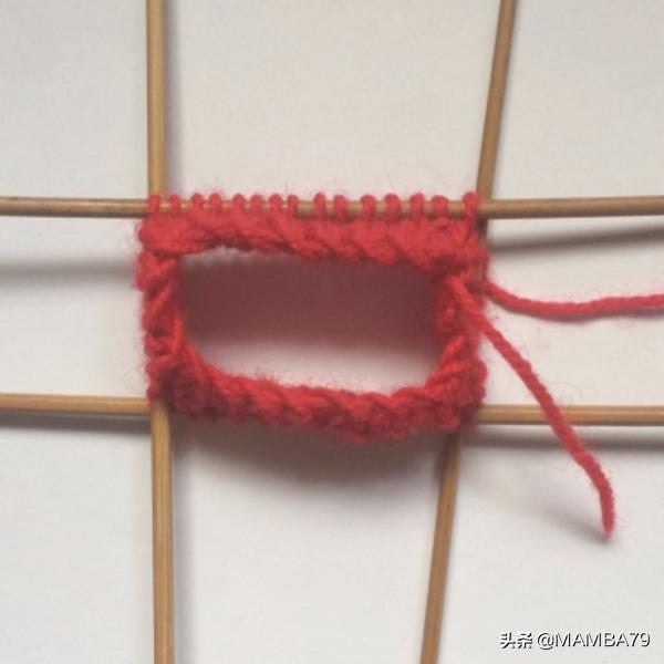 1、我们将提前准备好的毛线和毛线针拿出,如图将毛线针从上往下织。起44针做示范用。